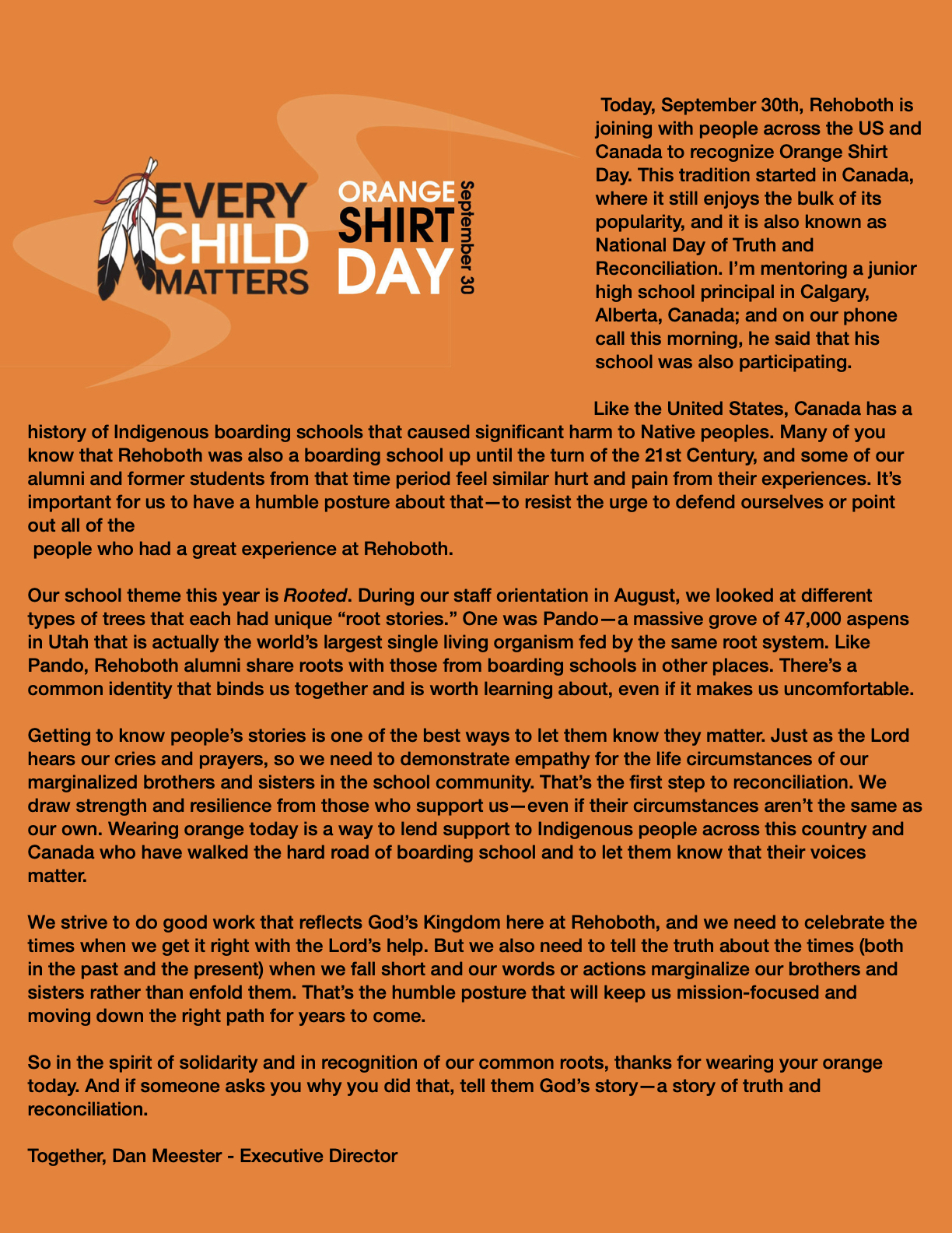 For more information about what “Orange Shirt Day” is, please visit this link: www.orangeshirtday.org/orange-shirt-day/ |