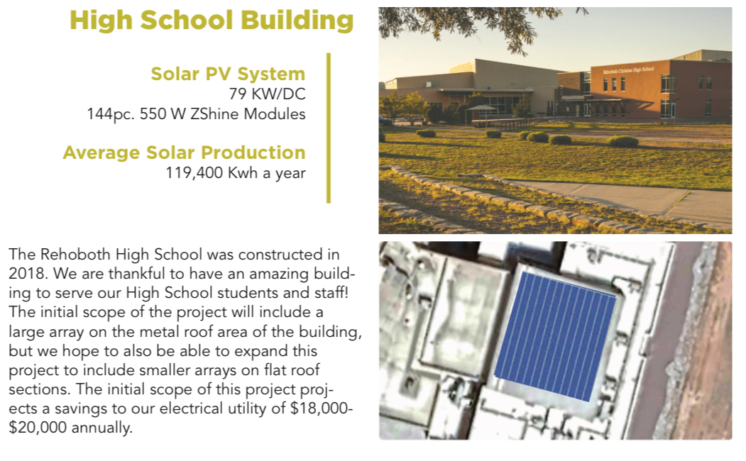 As we continue to strive to be Creation Keepers, one of our Rehoboth Throughlines, we are thankful to use the abundant New Mexico sunshine to help us better be stewards of God’s creation and the resources that He has provided for us. We hope to have the funding raised by February 1, 2026 to move forward with the project prior to the July 4, 2026 deadline for the direct credit.